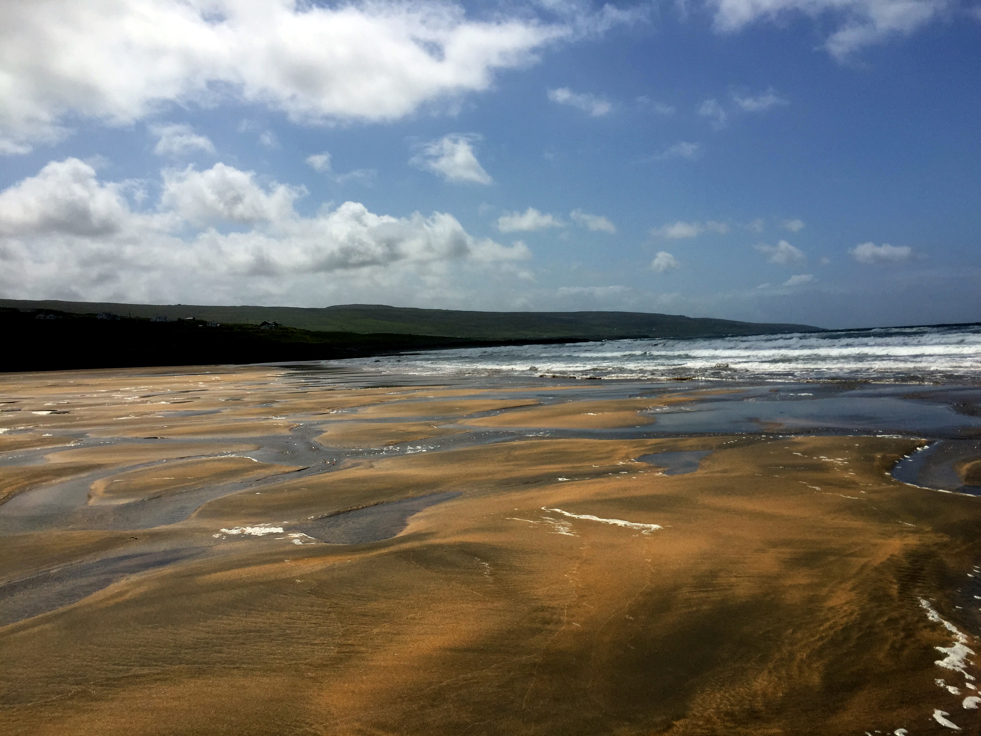 This picture shows a different side to The Burren in County Claire Ireland. This beautiful sandy beach is located in Fanore in County Claire. I had never seen anything like it before in my life. The sand is a mixture of black and brown sand. Just down the way, there is a grassy hill with more of the limestone that is common in The Burren. I could sit there all day watching the waves come in and be perfectly content. Have a great end to the week everyone!